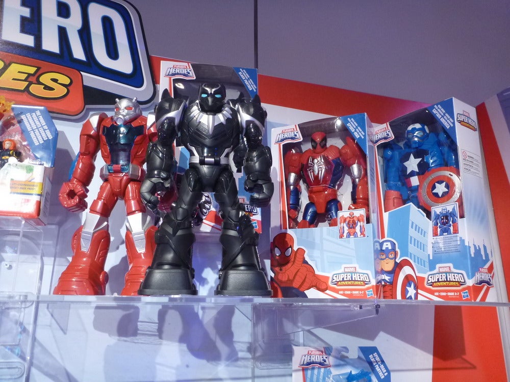 The final piece in the trio of big properties shown off at Hasbro’s New York Toy Fair 2018 event (after Star Wars and Transformers) was of course Marvel. The toy company is trucking right along with tons of toys based on the Marvel Cinematic Universe as well as comic characters, with plenty for collectors and kids of all ages. Starting off in that theme the lovely people at Hasbro showed off lots of fun role play items for Black Panther, big chunky 12 inch figures for Ant-Man and the Wasp, and a new lineup of Superhero Adventures figures, vehicles, and playsets including the Iron Man Power Up Headquarters, Power Paw Black Panther, and Captain America’s Victory Launcher.