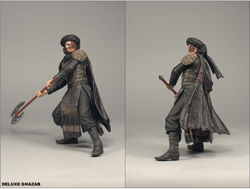 Each figure is fully articulated and includes detailed costuming details and spring-loaded play action highlighting their unique weapons and accessories from the feature film. The 6-inch action figure line includes two figures of Prince Dastan: a Warrior Dastan and a Desert Dastan, Zolm: Lead Hassansin, and Ghazab the Double Bladed Halberd Hassansin.