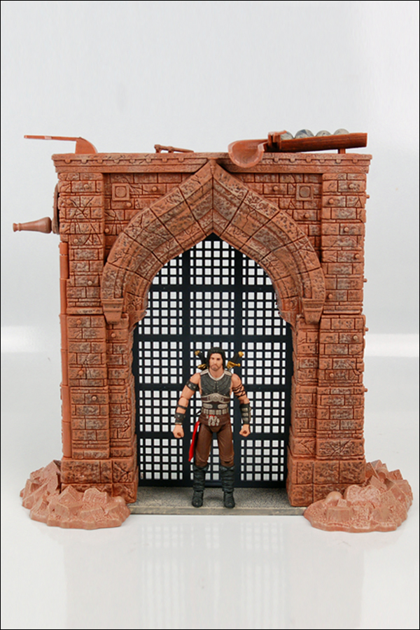 The set depicts a key action sequence from the feature film and contains unique play action features including a spring-loaded rock launcher, retractable gate, secret compartments, hidden traps, slides and working cranks. The Alamut Gate playset includes a 4-inch action figure.