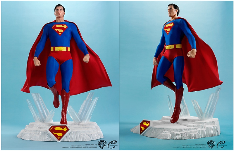 Cinemaquette (cinemaquette.com) announces that they are now accepting pre-orders on their eleventh mixed media sculpture: Christopher Reeve as SUPERMAN. This stunning statue captures the moment the Man of Steel touches down to Earth. Constructed of polyurethane composite with realistic silicon skin, the Superman Cinemaquette's head is individually punched with real human hair.