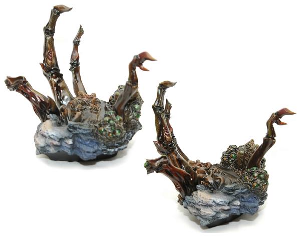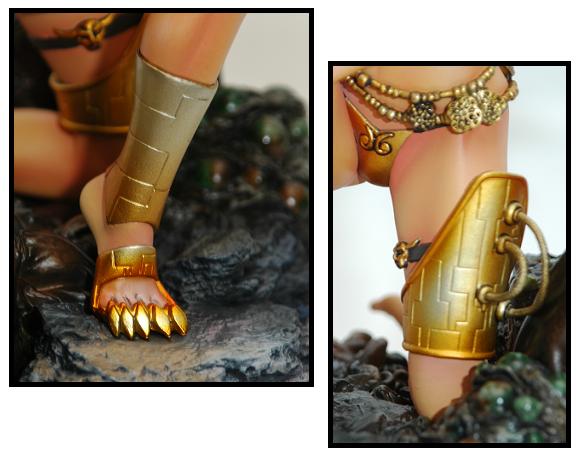 PAINT: Amazingly detailed, the paint is near perfection. Boris' original colors which captivated fans in the original painting are replicated here and help make this a piece worth admiring. Again, the impressive sculpting comes to life when masterfully colored; the toned muscles shaded beautifully, the golden armor spot-on. Particularly (and again worth mentioning), the insectoid-base is a alone a work of art, the grotesque amputated appendages covered in glossy browns and greens.
