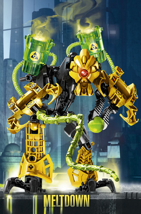 HERO FACTORY Alert! Meltdown has been sighted near the Mekronite Planetoid Belt – his objective unknown. Beware: he is Von Nebula's most destructive servant! Armed with a radioactive sludge shooter and Meteor Blaster, he also has a cyclops stare that must be avoided!