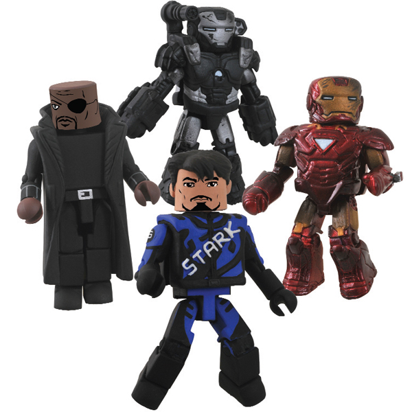 Includes Nick Fury, Racetrack Tony Stark and Battle Damaged versions of both the Mark VI Iron Man and War Machine. $18