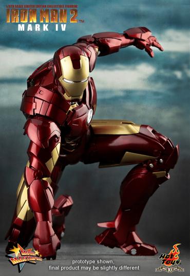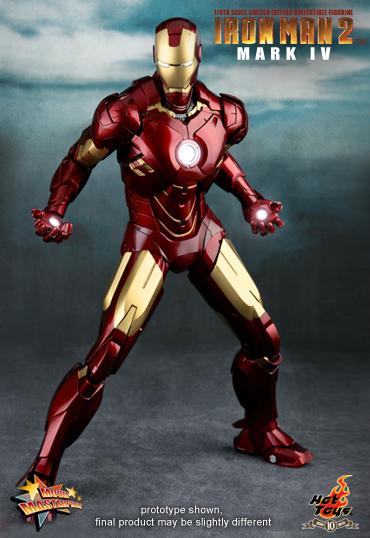 Hot Toys has released images and full details about their newest 1/6th scaled Movie Masterpiece figure. This all new Mark IV figure is the third release so far from the Iron Man 2 collection and will accompany the previously announced War Machine and Whiplash figures. The figure will feature added versatility and poseable fingers to provide the ultimate Iron Man collectible so far.