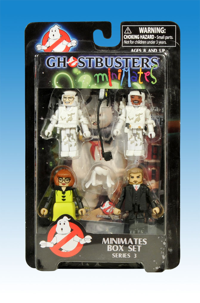 Diamond Select Toys has released packaed photography of their third Ghostbusters Minimates set. The new set includes gooey Egon Spengler, gooey Winston Zeddemore and the never seen before Janine Melnitz and Walter Peck, the latter with his own marshmallow crown.