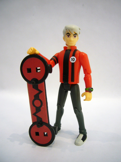 Albedo has pretty standard action figure articulation with joints at the neck, shoulders, elbows, hips, and knees. That's actually pretty good for Ben 10 figures, and certainly enough for basic posing. Albedo also comes with an accessory, a red painted hover board. Like Ben's original one in green, the board has a post that plugs into the figure’s foot and wheels for zooming around!