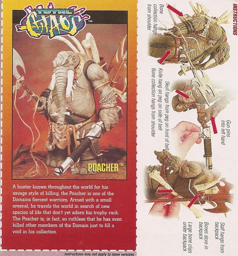 Should McFarlane Toys return to their majestic glory of Spawn, Dragons and everything wicked and make believe, Total Chaos is one series I'd love to see them revisit in full. True, we did get an updated Poacher not too long ago, but look at all the cool creative possibilites this line had to offfer!