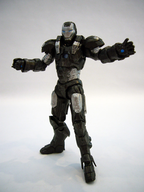 Its construction is very rigid, with angular armor and pronounced layers of plates. A bulky suit, War Machine has a heavy torso with large shoulder pads, reinforced forearms with built-in submachine guns, and sturdy legs. The War Machine figure has a very good sculpt, with deeply cut lines and lots of tech details. The layering on the arms and the chest are very well done.