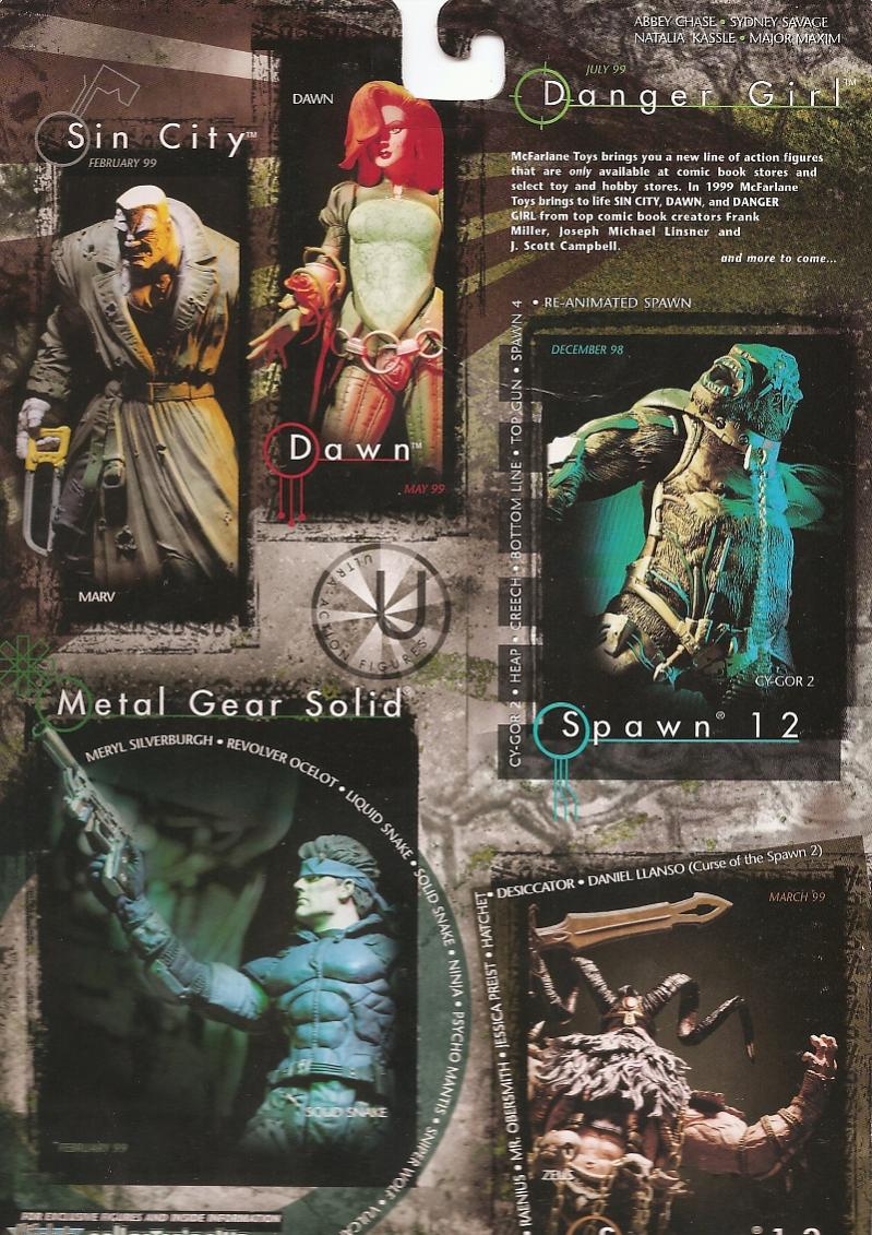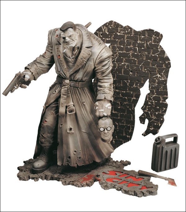 Monday we took a look at NECA's Sin City movie-based figure line and today we follow-up with McFarlane's take on the Sin City comic. This was a small series, consisting only of Marv as both a loose 6-inch figure (pictured - color and b&w versions were available) and a deluxe "Death Row" Marv with electronic sound effects. Can never have enough Sin City collectibles.