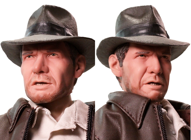 The hat is sculpted onto Indy's head and it looks very good, although it would have been nice to have an interchangeable head for those scenes without his hat (there are a few). And what can I say about the head? It looks far better in person than any photo can show you, that's for darn sure. My first impression of it was leaning more negative as his mouth just looked incredibly odd. But it's all in the angles! Looking at this sculpt from other angles and better lighting, it's fantastic. It's a far superior likeness over the Raiders Indy by a long shot.