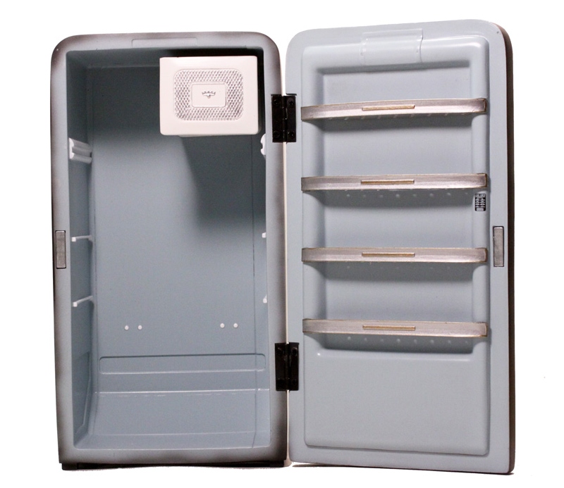 The door is secured with hinges and depending on how you display this, you may encounter the loosening of screws. For example, if you want to display the fridge on its side with the door open, the weight of it all can loosen the screws a bit so be careful. Otherwise, this is a great little souvenir of one of the worst moments in film history. And don't worry, Indy can fit in there just fine.