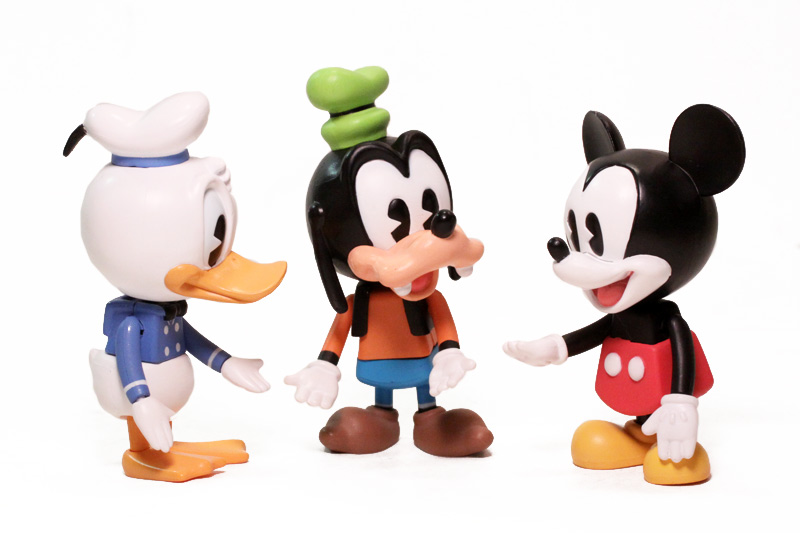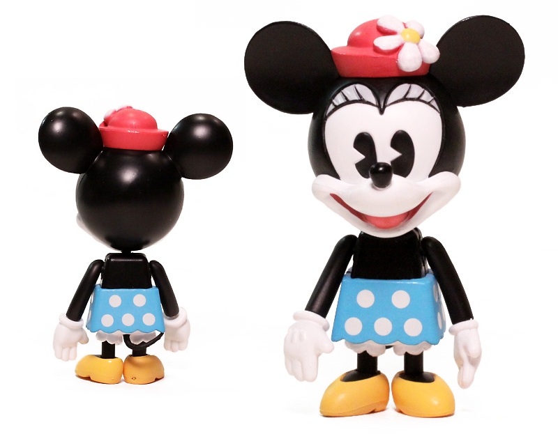 Each Cosbaby has some points of articulation: Neck, shoulders, wrists, and legs. The leg joint is pretty free though so you can rotate the toes in any direction. There is a waist joint but depending on the character, you may not be able to use it. Mickey and Minnie both come with separate sculpted shorts (or skirt) and their tight fit prevent any real waist turning of any sort.