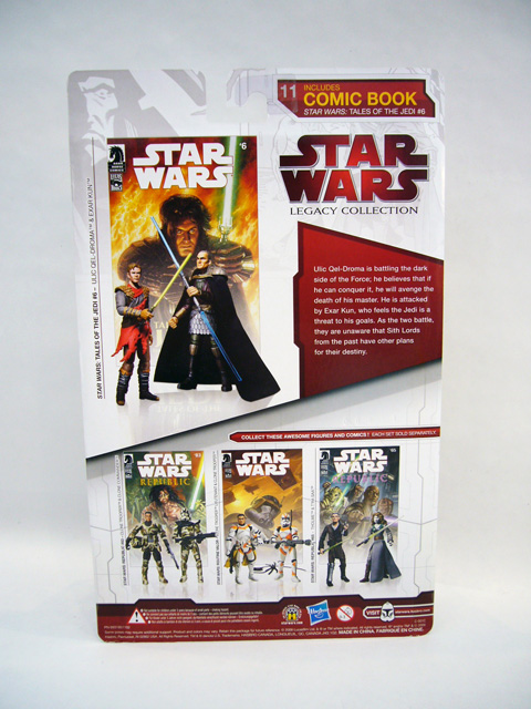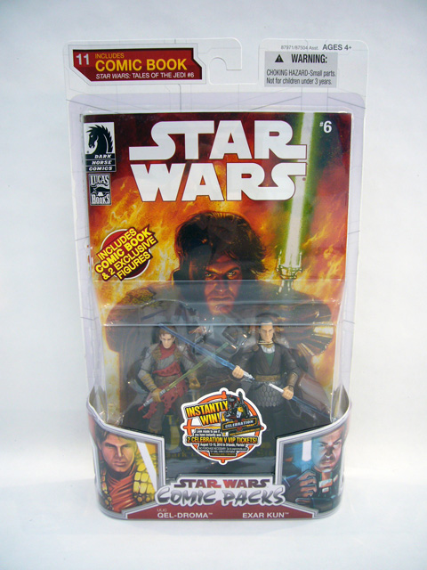 Hasbro's Star Wars Comic Packs have provided an interesting look into the "Expanded Universe" (books, comics, games, etc.) of the Lucas-created saga since their inception a few years ago, and sadly the line is about to end later this year. The Packs have had their ups and downs, with many sets appealing only to those familiar with the source material. Crazy repaints and weird looking characters are fine for the main film line, but don't exactly jump off the shelves when no one knows who they are. Thankfully, in the final waves of Comic Packs Hasbro is getting to some great characters, including two fallen Jedi who together spread the dominion of the Sith across known space: Ulic Qel-Droma and Exar Kun!