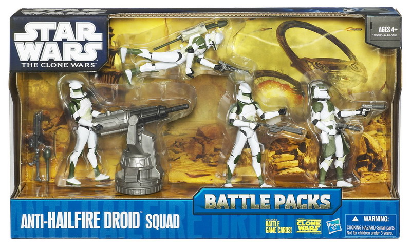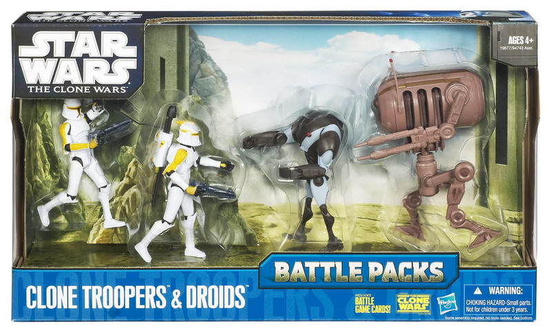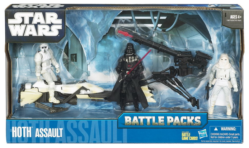 The onslaught of new Star Wars action figures this August continues with four new Battle Packs. Priced at a SRP of $29.99 each, these adventure-ready box sets include: