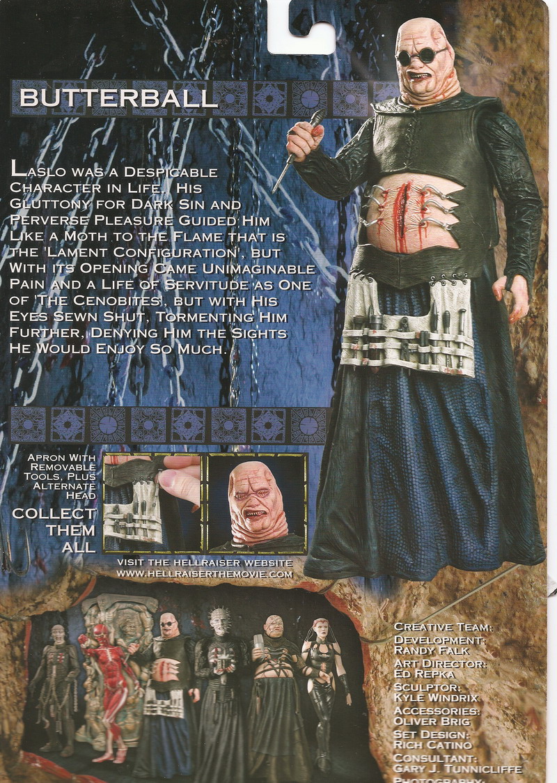 Following NECA's Hellraiser Series 1 Card Back from last week, we continue on with Series 2. This assortment allowed collectors to piece together the Pillar of Souls when all the figures were purchased. Butterball is my favorite Cenobite from this assortment; just a great, simple demonic character design and the broad, skirted base made displaying him a joy.