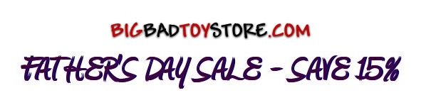 From now until Monday June 14th, save 15% on everything at BigBadToyStore.com except 'New' and 'Backorder / Preorder' items. Get Dad something exciting, if he's not into figures, grab a cool t-shirt, exciting graphic novel, or get him a tie and grab some figures for yourself. Simply browse your favorite menus HERE to start saving 15% on thousands of items.