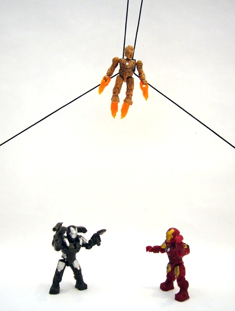 Both Iron Man and the Ground Assault Drone have ball-jointed necks, ball-jointed shoulders, elbows, wrists, waists, ball-jointed hips, and knees. Poseability is great, even with their small size and bulky armor.