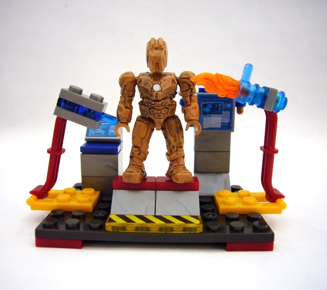 The sculpts on the figures are also very good. Significantly less "pudgy" than some other constructible mini-figs, Iron Man and the Drone are nice tiny representations of the movie characters. This is a perfect scale for mechanical figures and powered armor, and the sculpts are covered in tech details and armor plating. It's really quite amazing, and basically requires a magnifying glass to see all of the elements. Paint applications are bright and bold on Iron Man, with resplendent red and gold with white details.
