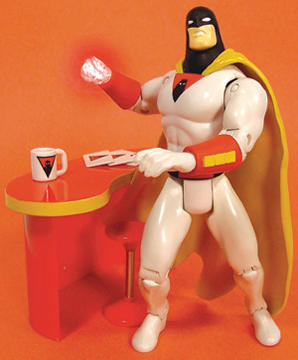 Cartoon Network's Space Ghost: Coast to Coast is a mystery me as I never watched the show in the late '90s. However, I am all too familiar with Space Ghost, having been raised on the Saturday morning cartoon - "Space Stars" - in the early '80s. The Herculoids were my favorite 'toon of the show, but Space Ghost did grab my attention. Fans of Space Ghost old and new have plenty to like about this figure. It's a very faithful representation of the cartoon superhero, loaded with useful articulation and an array of accessories: desk, chair, cue cards and even a little coffee mug. A version with light-up lasers was also released, as well as a clear version.