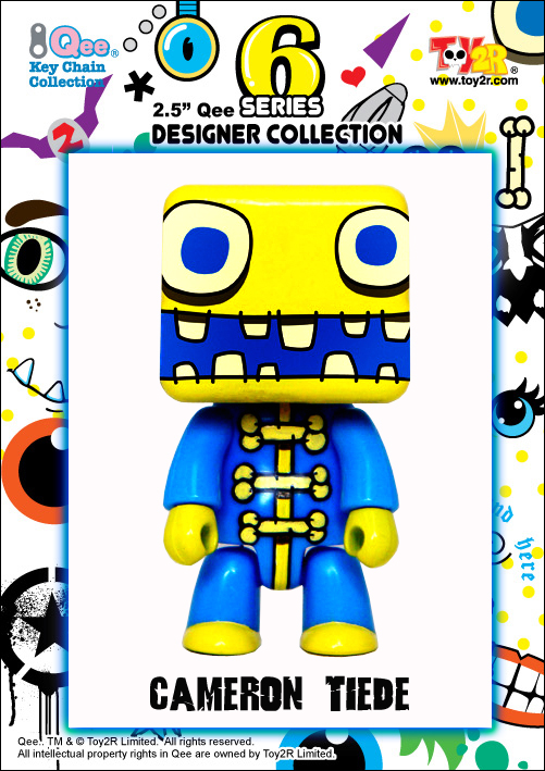 First is Cameron Tiede's Nocturnal Decay Boxee Qee (pictured above). Tiede uses unconventional angles and view points to create unique and curious looking creatures and utilizing the Boxee Qee canvas has been a perfect marriage. Tiede continues to produce a huge range of artwork for Disney, Mattel and Nickelodeon and this marks the first time his work has been captured on Qees.