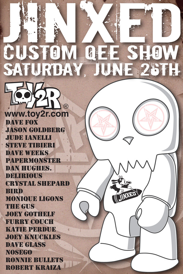 Saturday, the 26th marks the opening of the DIY QEE Custom Event being held at Jinxed in Philadelphia as part of the ongoing Toy2R 15th Anniversary Celebration Tour.