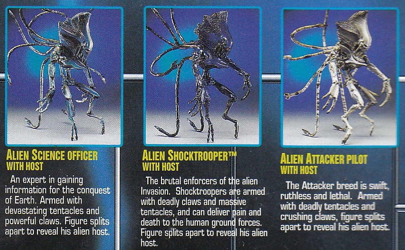 The alien action figures in this series were awesome, even if the 5 zillion color variants were never seen in the movie. Really great sculpts and solid toy construction.