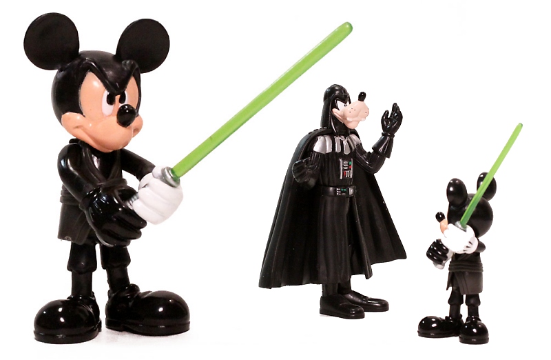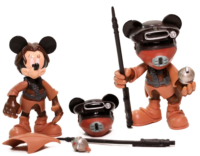 Still going strong in the Disney Theme Parks are their novel line of action figures that mashes up the likes of Mickey Mouse with the likes of Luke Skywalker. Now well off on their fourth series, the line has shown vast improvements since it began. Please make note that this action figure line is NOT made by Hasbro, but it is about the same scale. Hasbro HAS made one Mickey Mouse figure as a Jedi and is also available for purchase with his droid R2-MK for those wondering.