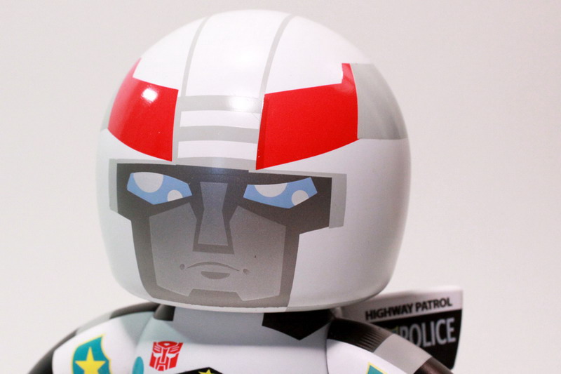 If you couldn't tell already, these vinyl-plastic mega-deformed creations are super cute, highly collectible, and silly fun. I couldn't help but pick up a few of my favorite characters here and there and Prowl just happens to be one of my favorite Autobots from the classic Transformers cartoon. All Muggs are essentially the same mold and sculpt with small variations depending on the character. Certain Muggs have ears/horns, some have shorter legs, and others have wings. Since Prowl is a character with his doors on his back, he gets to have that added feature.