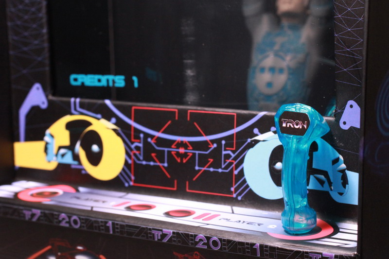 The classic arcade style box is remarkable with great graphics and detail on all sides, recreating the 80's game. Through the window screen you can see the classic pose of the figure, along with a high score from Flynn. A "try me" button on the bottom activates the illumination feature that lasts for about 8 seconds. A nice added detail is the plastic TRON joystick on the front.