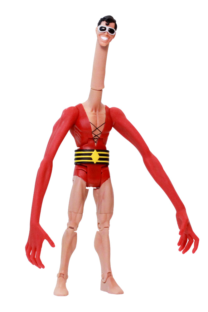 There's more than just extra limbs for Plastic Man, there's an extra long neck joint as well as a springy lower torso. The SDCC exclusive accessory is a suit-case accessory where arms and head can be attached. The suitcase opens up to reveal three small comics printed on cardstock. This is a great accessory as a freebie but it's definitely a bummer for those unable to make the convention.