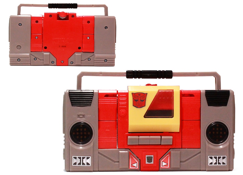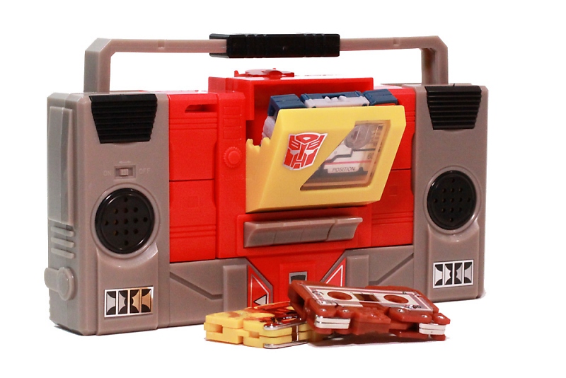 Fresh from San Diego Comic-Con (or hasbrotoyshop.com) is yet another Transformers Generation 1 Commemorative Edition exclusive. Now dubbed Autobot Blaster, this communications officer can blast into your home with three of his cassette buddies: Steeljaw, Eject, and Ramhorn. Meaning you shouldn't wait if you haven't ordered one yet.