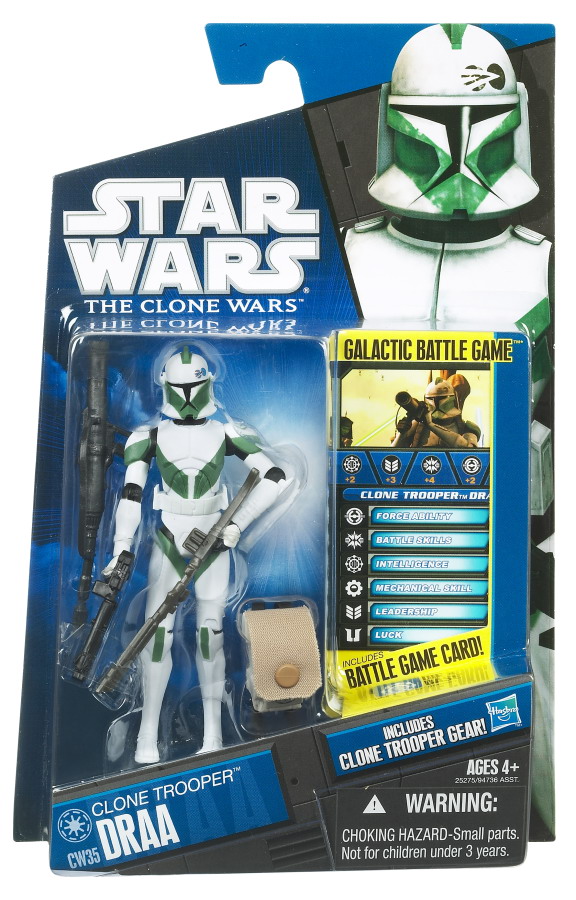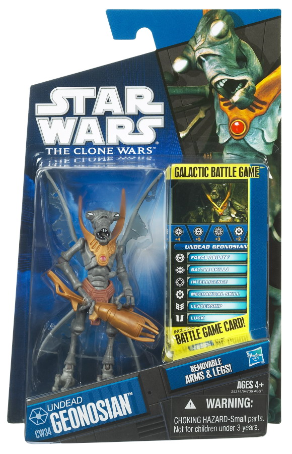 Hasbro provides a closer look at upcoming Star Wars: The Clone Wars basic figures - both loose and packaged. These figures, slated to start hitting retail this Fall, include: Boba Fett, Cato Parasitti, Clone Trooper Draa, Embo, Mandalorian Warrior, Quinlan Vos, R4-P17, Shaak Ti, and Undead Geonosian (!)