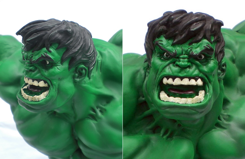 PAINT: There is a reason why Kotobukiya has named their Marvel statue collection "Fine Art Series". The vibrantly detailed paint work on Hulk breathes life into the already epic piece with its wide range of light and dark green hues. The facial details on Hulk are meticulously painted with accuracy and precision which results in a fantastic looking piece. The rocky display base is beautifully detailed with a broad range of paint techniques and colors which give it a life-like environmental look. This new Marvel Fine Art statue is painted as such and Hulk looks so good that it seems as if he is literally jumping right out of the pages of the comics.