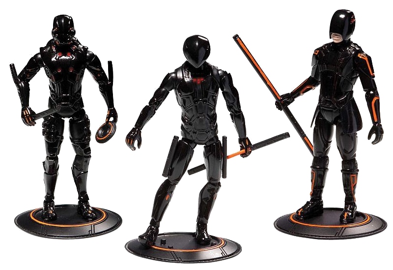 A slew of new images of Spin Masters' new TRON LEGACY action figures and vehicles have been released in anticipation of the toyline's arrival this month and next. Items include a loose look at the 3 3/4" action figures, packaged look at the deluxe 6" figures, packaged look at the new minifigure playset and Deluxe Identity Disc and a packaged unveiling of the extensive 1:50 scale die-cast vehicle line. All of these Tron Legacy collectibles are up for pre-order now at ToyWiz.com and the Playset and Die-Cast Vehicles are actually IN-STOCK! Remember to enter the coupon code "Apple" and receive 5% off your order.