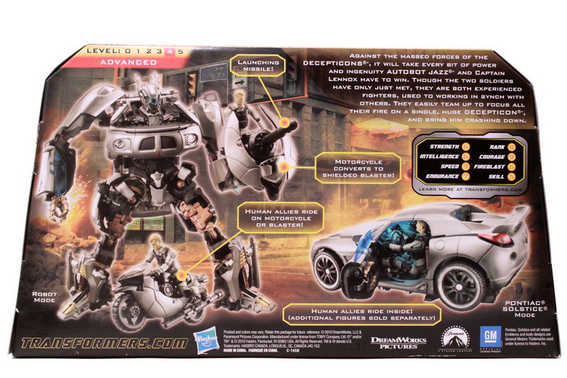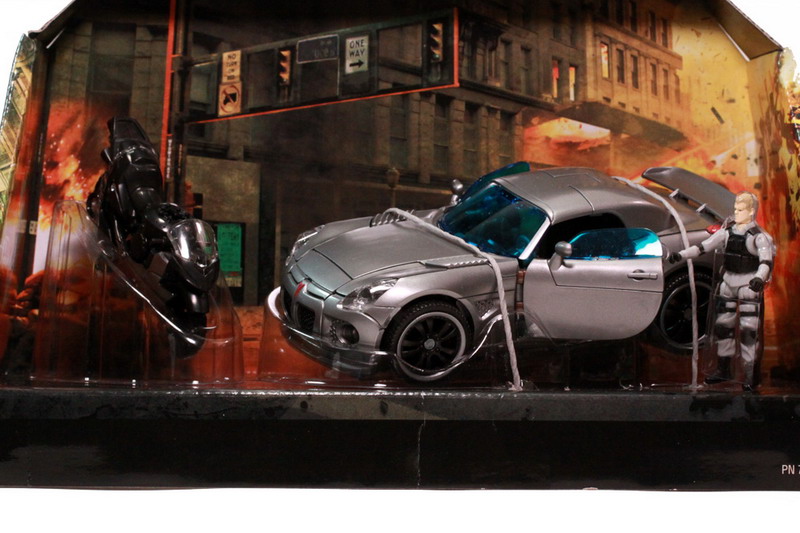 The latest Human Alliance is Jazz, the streetwise Pontiac Solstice from the original film and he comes with Captain Lennox (played by Josh Duhamel). There's a special added bonus in this set and that is a motorcycle that also acts as Jazz's weapon.
