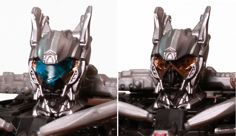 For the head, Jazz has two different looks. One is the standard face with his blue visor down, but you can also flip a switch on the back of his head to expose his... well... I think they're his eyes? There's definitely no point in showing off the head without the visor but I guess I'm okay with that feature since it does add play value.