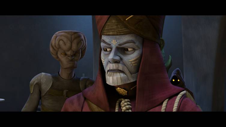 While Papanoida is featured fairly passively in his live-action incarnation, the character has an opportunity for a considerably more active role in The Clone Wars. Taking him deep into the Coruscant underground, the Pantoran Chairman's mission gives him the chance to demonstrate his chops in a few decidedly action-oriented sequences.