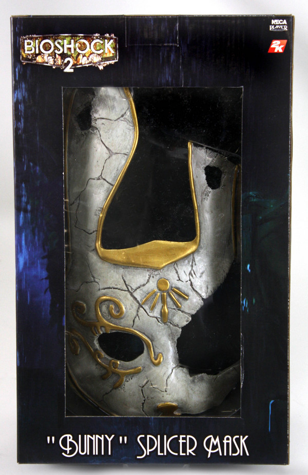 NECA provides new packaged photos of their upcoming BioShock 2 Gift Set. Exclusive to Toys"R"Us and slated for release later this year (late October/November), this BioShock figure/mask set will be priced around $40. It includes a new Little Sister in red dress and minature Delta doll accessory, Subject Omega with new Grenade Launcher weapon, and a 1:1 scale "Bunny" Splicer Mask. The latter will be cast in resin and will be exclusive to this set.