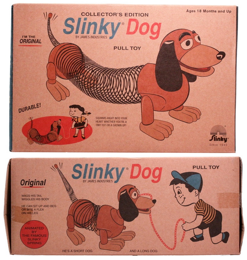 I'm not 100% certain about this but the packaging for Slink can differ but it's the same basic toy inside. I've seen your standard retail outlets carry Slinky Dog in stock but with Toy Story specific packaging. The boxes never showed the actual toy so I refrained from buying those. Seeing the retro original style box was much more comforting.
