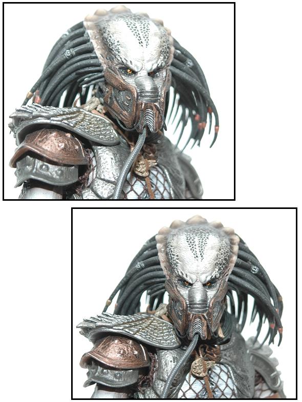 PHOTOGRAPHER NOTE: Two lights and filters were used to photograph the Guardian Predator figure; a yellow filter/light combonation (which gives the figure a warmer, brownish color) and a white filter/light combination (which gives the figure its more accurate blue/gray/silver color).