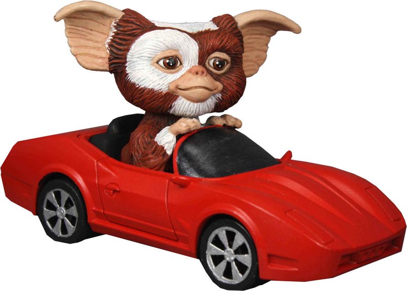 Today NECA unveiled their newest line of collectibles from the classic Gremlins license: Gizmo Motorized Figures! Each member of the trio features everyone's favorite Mogwai in iconic situations: popping up out of his "gift" box, racing around in his red convertible, or just standing by himself looking cute. The motorized figures, with pull-back-and-go motorized action, will arrive in stores next month!