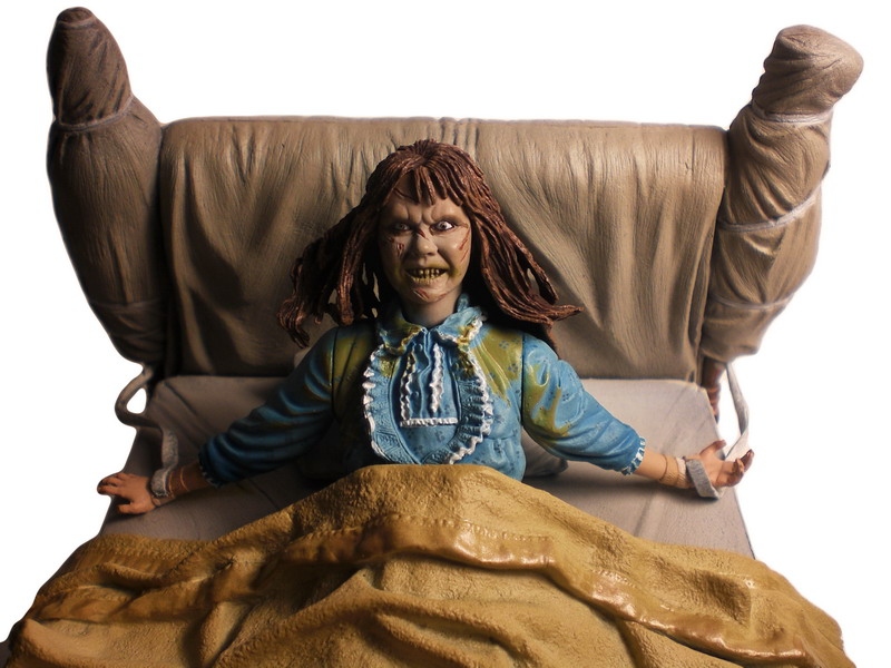 Ask anyone what is the scariest movie they have ever seen and they are very likely to say The Exorcist. It's hard to believe that this suspenseful horror film, which was released in 1973, still manages to scare the crap out of people today. There is just something about a young Linda Blair in demonic make-up bound to a bed and covered in chicken pea soup that sends shivers up your spine. Now almost three decades later, one of the most iconic horror scenes in movie history has been immortalized in plastic courtesy of NECA.