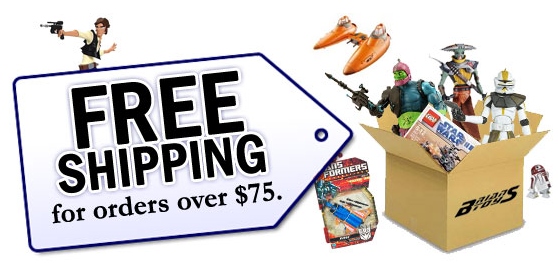 BriansToys.com is also offering FREE domestic shipping for orders over $75! Your order will ship by either FedEx Ground or FedEx Smartpost. This offer is good for in-stock orders shipped within the continental United States by Janurary 15th, 2011. Most items in their inventory qualify for this offer. Master Replicas items and Hasbro FX do no qualify. Also, large items that incur "oversize" surcharges may not qualify.