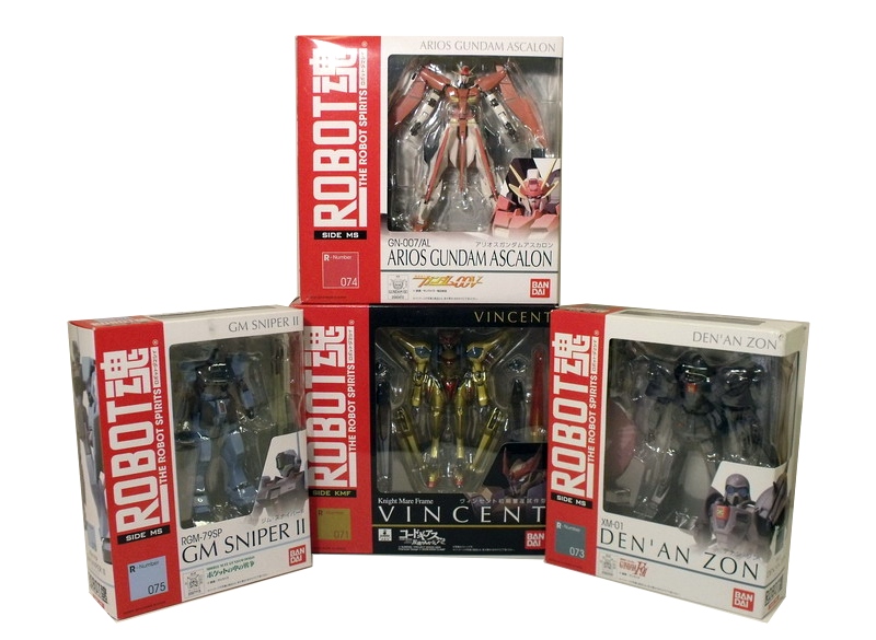 While Gundam is prevalent in Bandai's Robot Spirits, the line actually encompasses a broader range of mecha anime, such as Code Geass and Neon Genesis Evangelion (see our review of the SDCC Exclusive EVA-01 TEST TYPE Night Combat Ver. HERE). To give you an idea of what this series has to offer, we have four recently released Robot Spirits up for review. These include three Mobile Suits from various incarnations of the Gundam anime series: GM Sniper II (Mobile Suit Gundam), Den'An Zon (Mobile Suit Gundam F91) and Arios Gundam Ascalon (Mobile Suit Gundam 00). Also represented in our review is Knight Mare Frame Vincent from the anime Code Geass.