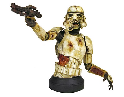 What's cooler than a Stormtrooper? A ZOMBIE Stormtrooper! Merging two of our favorite genres - the slick futuristic sci-fi of Star Wars and the sick decaying world of the undead - Gentle Giant's Death Trooper Bust was a homerun, right out of Geek Field. Whether you chose the standard version with bonus "Death Troopers" novel by Joe Schreiber or the deluxe edition with nifty swap-out parts, the Death Trooper bust was a horror collectible to die for. Long live the Empire!