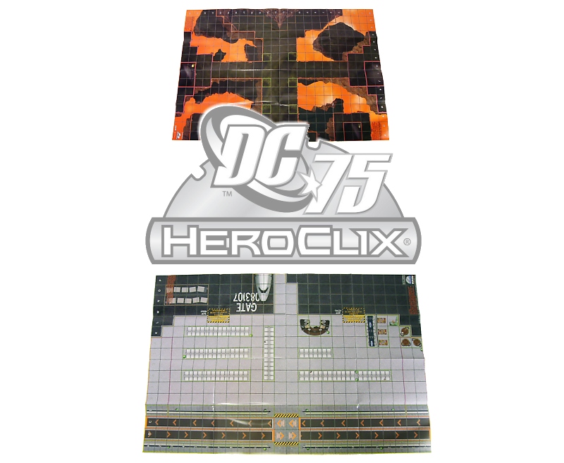 DC 75’s exclusive map is double-sided, offering two brand new battlefields. Hawkworld, featured in the Brightest Day series, is a land of floating terrain and vast chasms. Inhabited by beastmen in constant combat, it’s the perfect place for a pitched battle. Its map has wide open spaces and special “Open Air” terrain where figures can “fall,” suffering damage and reappearing in their starting areas. Look out for White Lanterns with their Force Blast powers and take advantage of the Open Air for activation clicks. And then there’s the Airport Terminal, where you can practically hear the muzak and feel the delays sucking at your soul. Thankfully in this airport you can really tear things up in HeroClix combat, taking advantage of rows of seats, kiosks, doorways, and more. There are even cool “Moving Walkway” strips where figures can slide (one direction per walkway) without using move actions! Note that neither map has any water terrain which will mean your aquatic figures will love that Bucket of Water.
