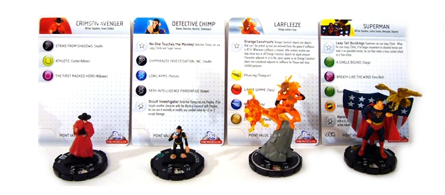 Special Powers are abundant as usual in modern HeroClix, with the usual cool, funny, or informative names like Warlord’s “.44 Auto-Mag,” Ragdoll’s “I’m Not the Funny Kind of Clown,” Larfleeze’s “Orange Lackeys,” and Hal Jordan’s “One-Man Justice League.” Point values are nicely diverse, offering the slim 30 and under Easy Company Soldier and Crimson Avenger to the one man armies of Ares, White Lantern Superman, and Ganthet. In fact, this set has nine figures over 200 points for great tent pole action right out of the booster!