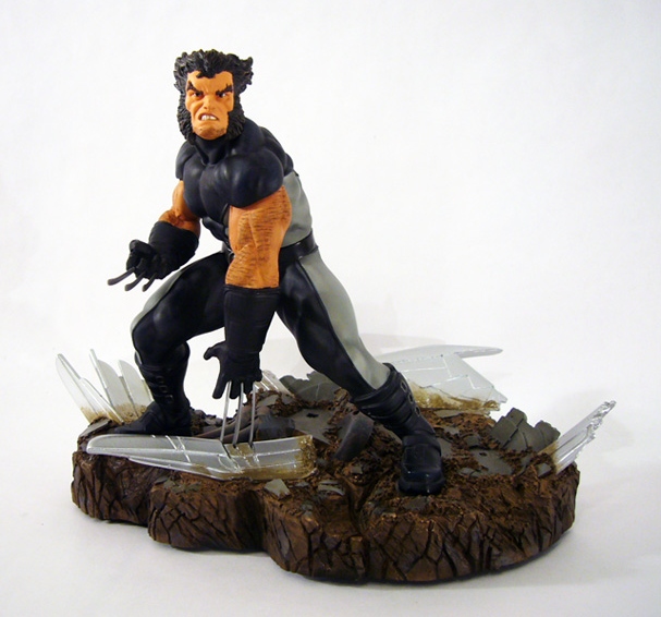 Wolverine is ready for any surprises at a low crouch to Warpath’s right. His signature claws are unsheathed and those on his left hand fit perfectly into corresponding slashes in the nearest piece of debris. X-23 stands to Warpath’s left, all four claws deployed as she too searches for more enemies. Meanwhile, Wolfsbane in her human appearance rests on Warpath’s shoulder, an excellent vantage point for a well-timed leap. All of the figures plug into the base securely via heavy metal posts except for Wolfsbane who plugs into Warpath’s shoulder.
