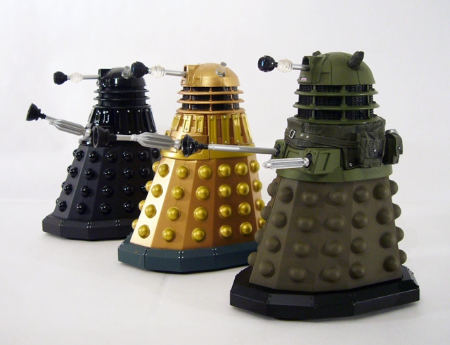 Series 5 saw the return of the Daleks (as every season does...), but this time viewers were in for something a bit different. The first of the cyborg aliens seen in “Victory of the Daleks” were not the usual gold or even the rarer bronze or black designs. Instead, serving in the British army in 1941 were green hued “Dalek Ironsides” outfitted with equipment belts and emblazoned with the Union Jack! Though they were part of a complex plot by the Daleks to regain their former pure genetic glory, the Ironsides served the British forces for a time as artillery and even waiters. The design was an instant hit with fans, and it would be only a matter of time before they were made into toys.