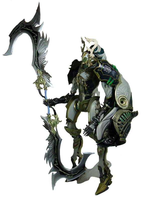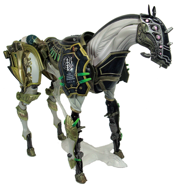 The powerful Odin summon has appeared in almost every Final Fantasy game released since Final Fantasy 3, and his appearance hasn’t changed much in all of that time, even if the method in calling him to battle has. But in the newest FF game, Final Fantasy 13, Odin is given a major overhaul as part of the new combat system, including a bold new look. Now referred to as an Eidolon, Odin must be defeated in battle before becoming the lead character Lightning’s exclusive summon. Odin first appears in a humanoid form wielding his massive double-ended Zantetsuken sword, which in older games was always the case, but he was also astride a mighty steed. The surprise comes when the player activates the Gestalt mode and a secondary form takes place as Odin himself transforms into a horse for Lightning to mount as she splits his sword into two massive scythe blades to use on enemies. The new Odin is now realized in a fully-transformable, highly-detailed action figure in Square-Enix’s FFXIII Play Arts Kai series.